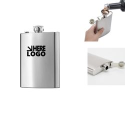 Indulge in a variety of spirits, including whiskey, vodka, brandy, bourbon, gin, tequila, rum, cognac, and more, with these elegant 8 oz. flasks crafted from premium anti-corrosion, rust-resistant stainless steel. Equipped with tiny funnels for seamless filling, they boast laser-welded swing arms connecting leak-proof screw caps for ultimate security. Personalize them with your brand name, logo, or a special message to transform them into stunning promotional gifts or giveaways that leave a lasting impression. 100% guarantee for quality. Rush Service.